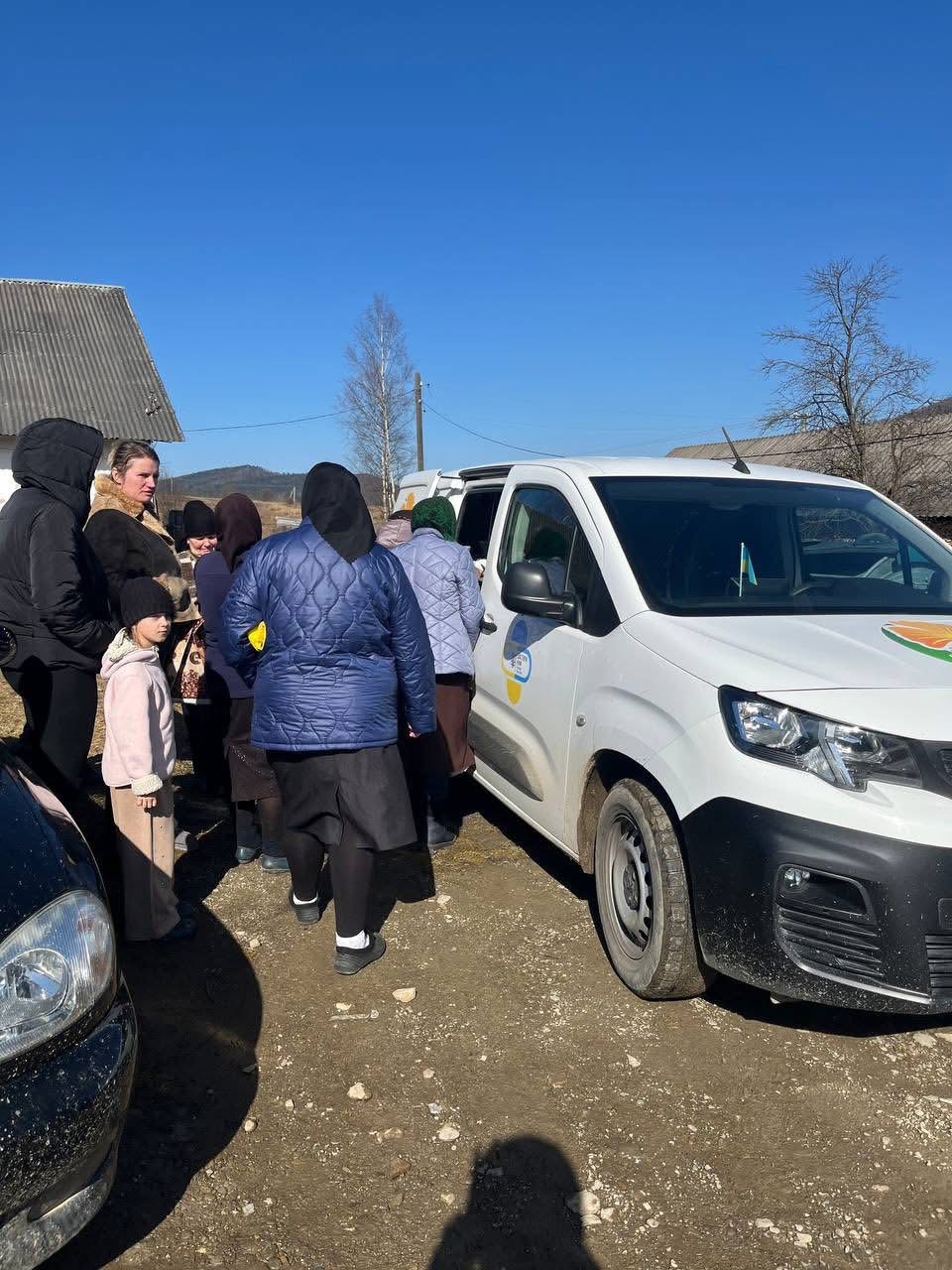 На світлинах — мобільна аптека під час роботи у селі Луги Калуського району. Під час виїзду фахівці також зібрали інформацію про актуальні потреби, щоб надалі формувати асортимент ліків відповідно до запитів людей.