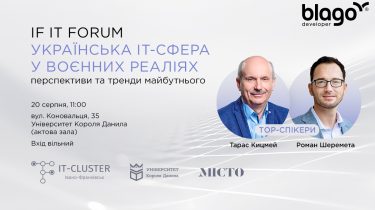 blago developer, ІТ-кластер, Університет Короля Данила запрошують топ спікерів України. 20 серпня відбудеться IF IT FORUM, метою проведення заходу організатори визначають обговорення проблем з якими ...