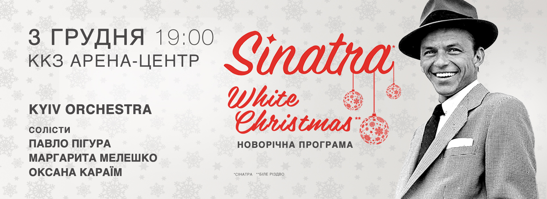 У перші дні грудня Kyiv Orchestra розпочинає святкове турне SINATRA. WHITE CHRISTMAS – серію концертів, що подарують слухачам відчуття справжнього різдвяного дива. Концерт в Івано-Франківську відбудеться ...