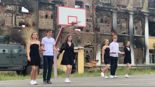 В Харкові випускники станцювали вальс біля школи, якої більше не існує