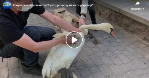 На міському озері поселився лебідь без одного крила. ВІДЕО