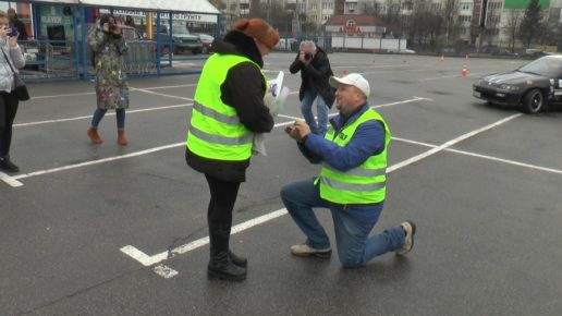 У Франківську суддя освідчився коханій на змаганнях з автомобільного слалому. ФОТО