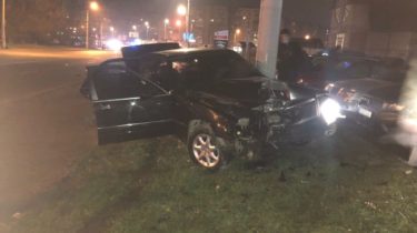 На Івасюка водій Mercedes зніс електроопору і пошкодив припарковану автівку. ФОТО